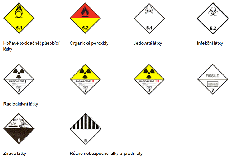 Výstražné symboly dle vyhlášky 402/2011 Sb